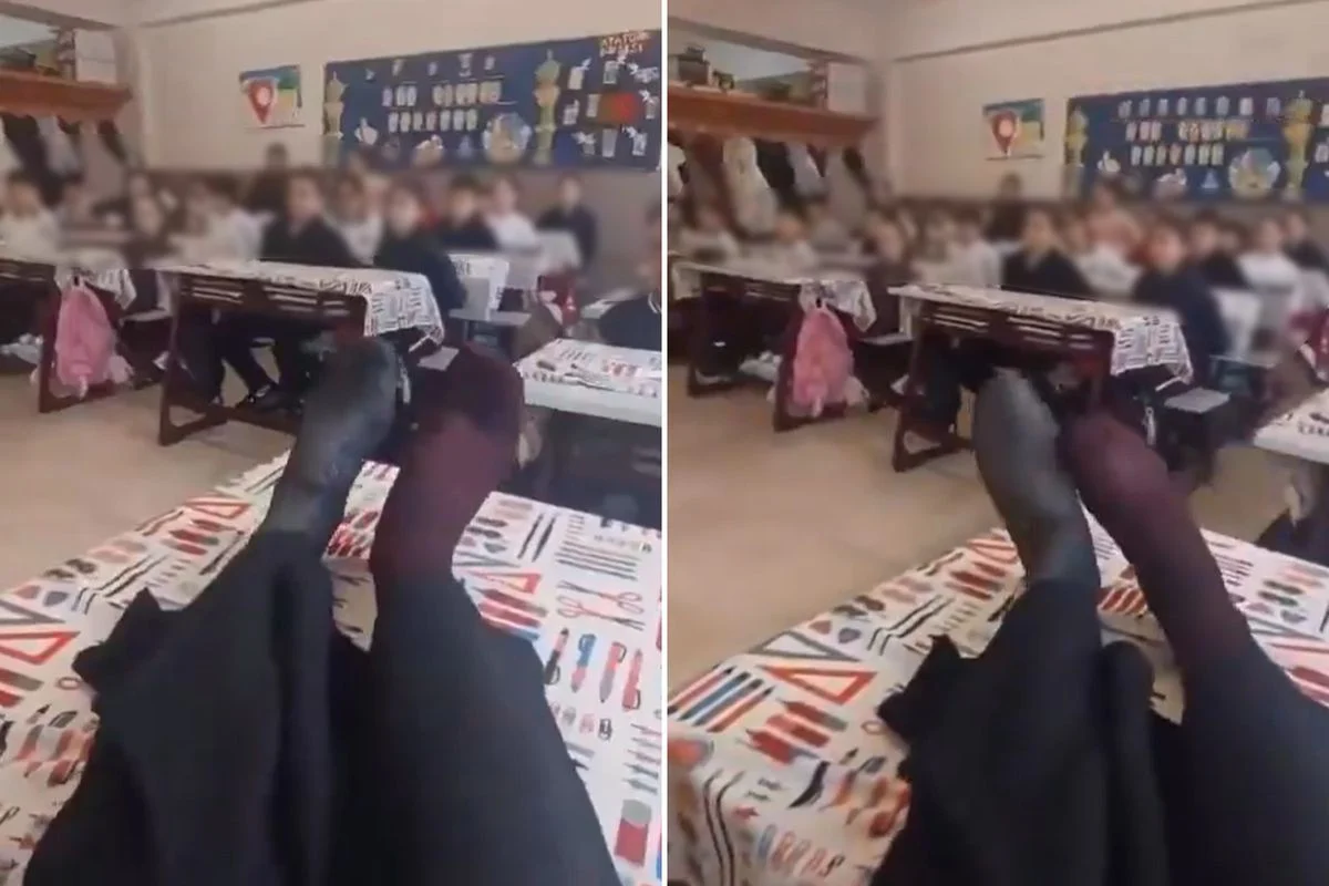 Ancak sosyal medyaya yansıyan görüntülerde bir öğretmenin, öğretmen masasının üzerinden farklı çoraplar giydiği ayaklarını öğrencilere doğru uzatıp salladığı anlar tepki çekti.